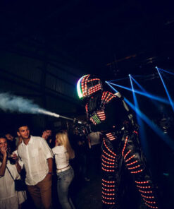 Robot Led à Belfort et dans le Territoire de Belfort. Échassier lumineux et laser, une animation dynamique. Discothèque, mariage, Bar Mitzvah, événements.
